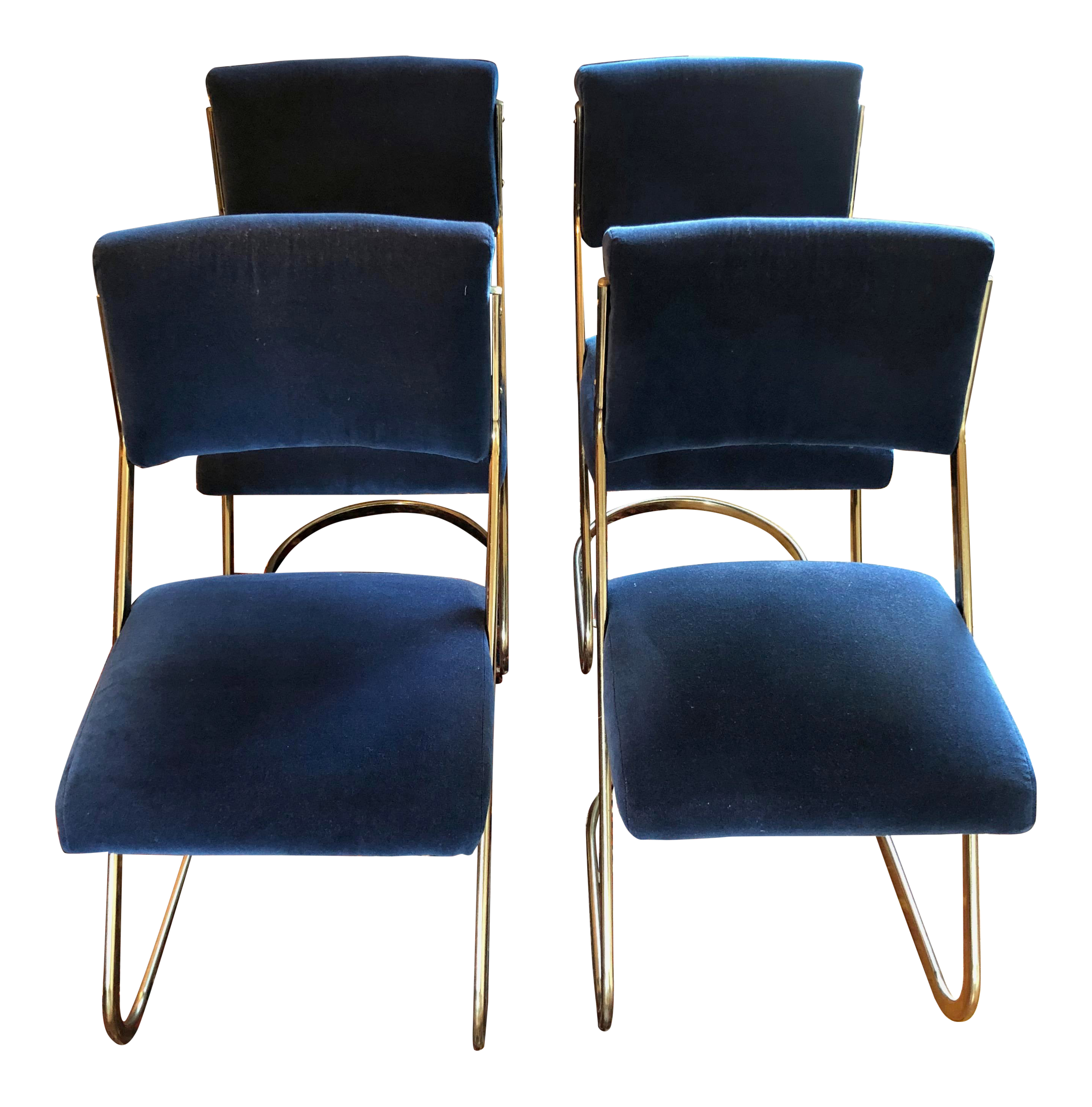 1960 Vintage Blue Velvet Chrome Mid Century Modern Dining Chairs Set Of 4 Chairish